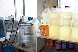 自社培養のEM配合ソープを全工場で使用。汚れや臭いを元から分解、環境保護にも貢献しています。