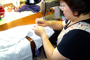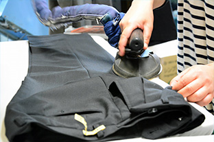最新設備によりアパレルメーカーと同じプレス機で仕上げていますが、機械では出せない品質は、やはり人の思いです。細かい配慮は手仕上げで完成されます。