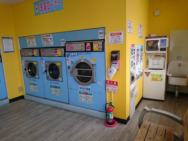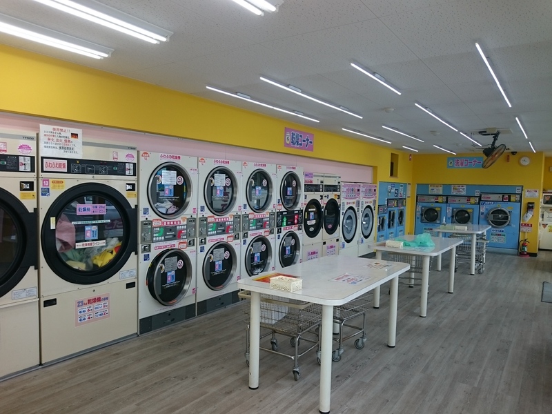 小さいのから大きいのまで洗濯機6台、洗濯乾燥機2台、スニーカー洗濯機1台、乾燥機13台の24時間営業の大型コインランドリーです